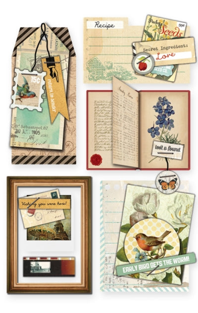 Coordinating multi-layered dimensional cardstock self-adhesive embellishments.