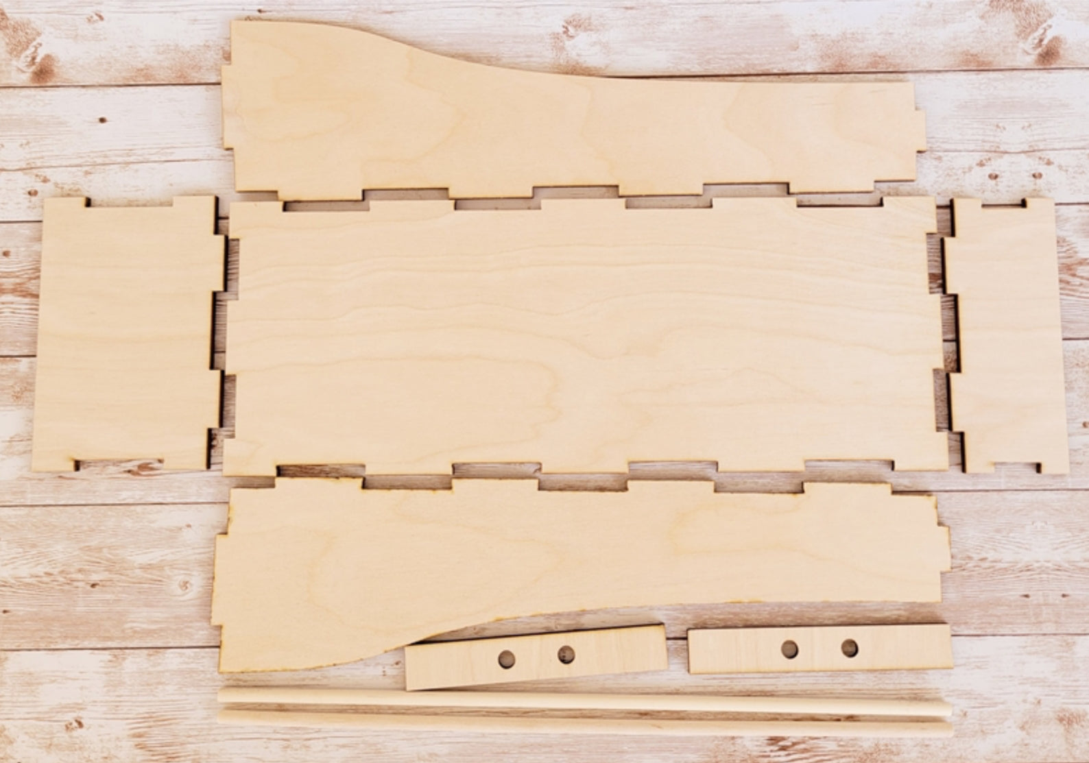 1-DIY 12 inch High back box. 3 inch tall back that slopes to 2.0" tall front Memory-Dex Box, DIY box is made from 3/16" laser cut wood pieces making one 4.75"x12.30" index holder. Comes with 7 laser cut wood pieces, 2 - 1/4 dowels to be assembled. DIY box fits your standard 2"x4" rolodex cards and more. Use wood adhesive to assemble box and then paint, ink or embellish these one of a kind Memory-Dex wooden boxes. Proud to be MADE in the USA (Finished box is for display sample idea only)