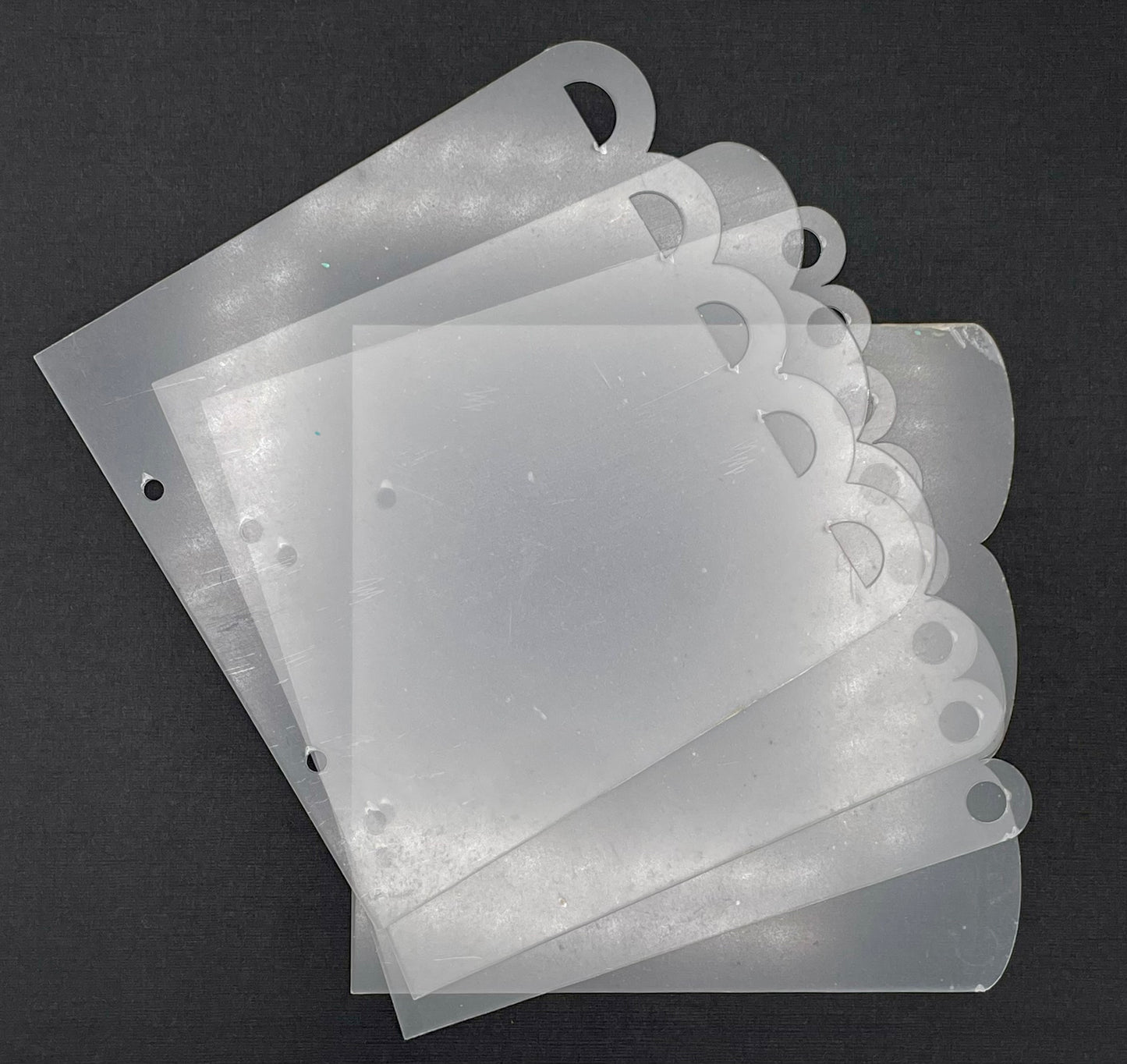 Package includes 4 different acrylic pages for decorating. Measures approximately 7”x7”