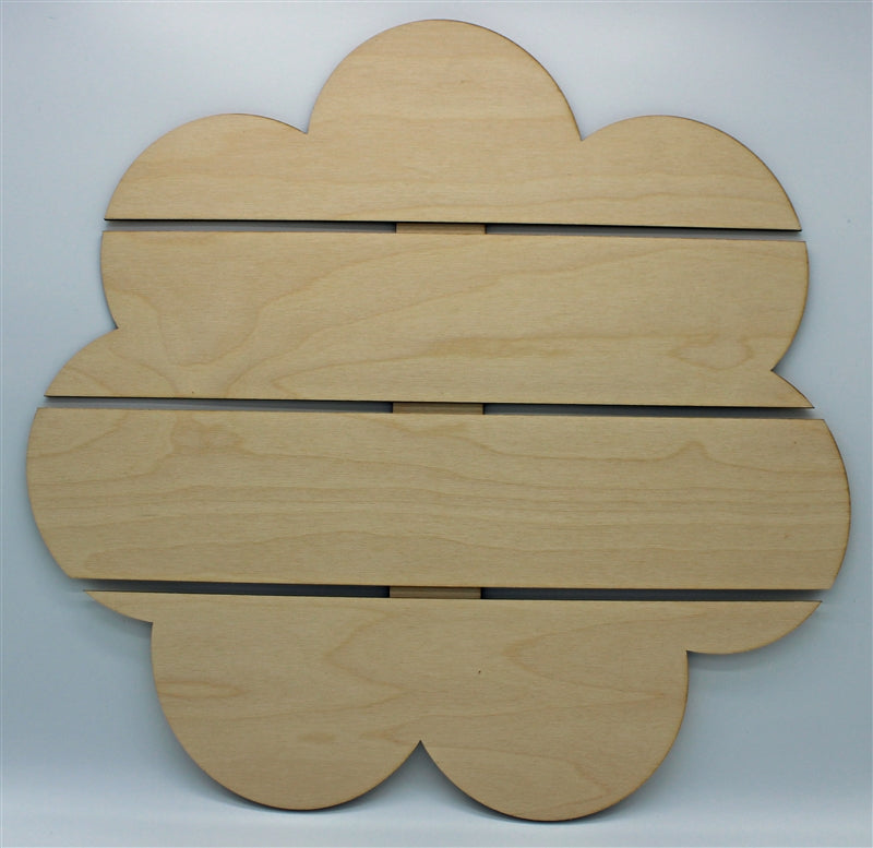 Flower DIY 1/8" birch wood pallet shape. Adhere with wood glue, mounting wood shape to the mounting stick. Adhere top and bottom pieces first flush and then middle pieces. Give equal amount of space in between each to give it that pallet look. Paint, ink, paper and embellish to create a one of a kind home décor piece. Edges may have a brownish color from the laser. Approx. size 18.25" x 17.0" Proud to be MADE IN THE USA