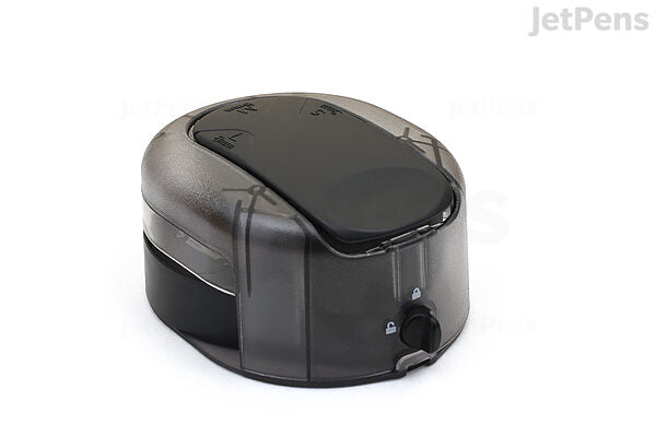 This corner punch also features a lock to prevent the lever from moving when you aren't using it. To lock the punch, hold down the lever and turn the knob clockwise. When you're ready to use the punch again, simply twist the knob counterclockwise, and the lever will pop back up.