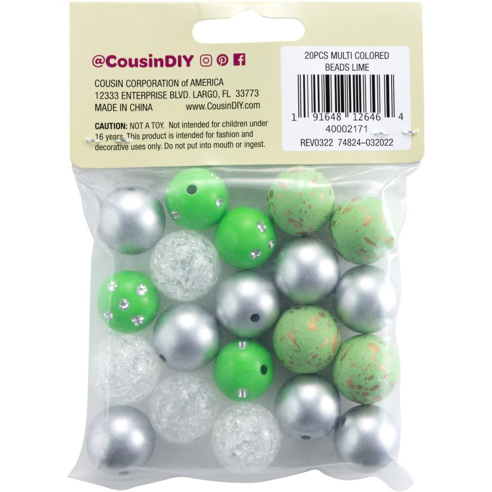 Add some color to your craft project with Bubblegum Beads! This package contains 20 bubblegum beads 20mm in size; lime mix. Imported.