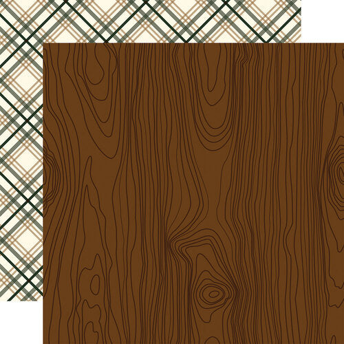 This 12" x 12" double sided paper is part of the Call of the Wild Collection from Echo Park. The front of this paper has a dark brown wood grain pattern. The reverse side has a diagonal plaid print. This paper can be used for cards, scrapbook pages, tags, journals, planners, and other paper crafting and mixed media projects. This paper is acid and lignin free. This paper is made in the USA.