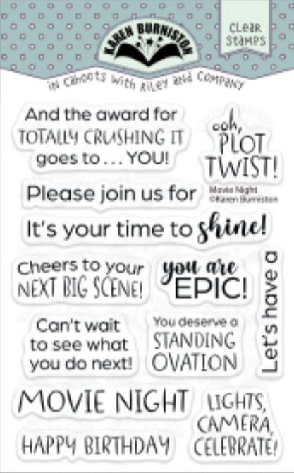 Karen Burniston - Clear Stamps - Movie Night Greetings
