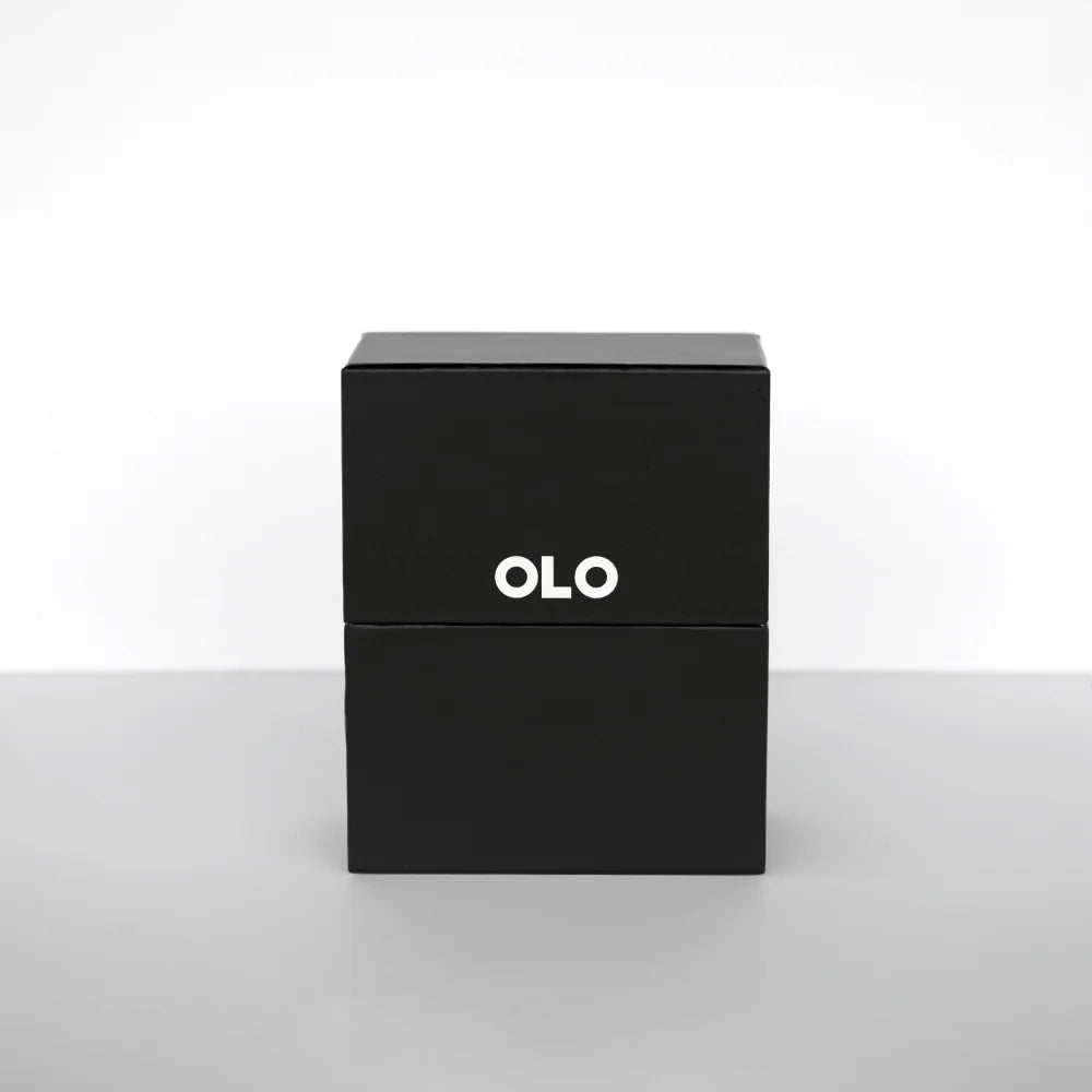 OLO-branded black matte rigid storage boxes are sleek, sturdy, and portable. This box will hold 32 OLO double-ended markers: Dimensions: