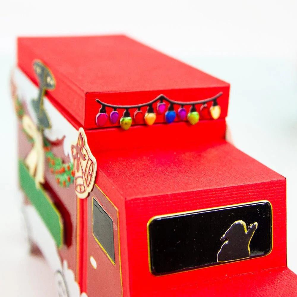 Create festive Christmas crafts with Tonic Studios' Truck & Track Die Set. This set includes instructions for building truck boxes and advent trains, perfect for holiday gift giving. The largest die measures 6.8”x7.2”, providing endless possibilities for your crafting projects. Add a touch of holiday cheer to your creations with this versatile die set.