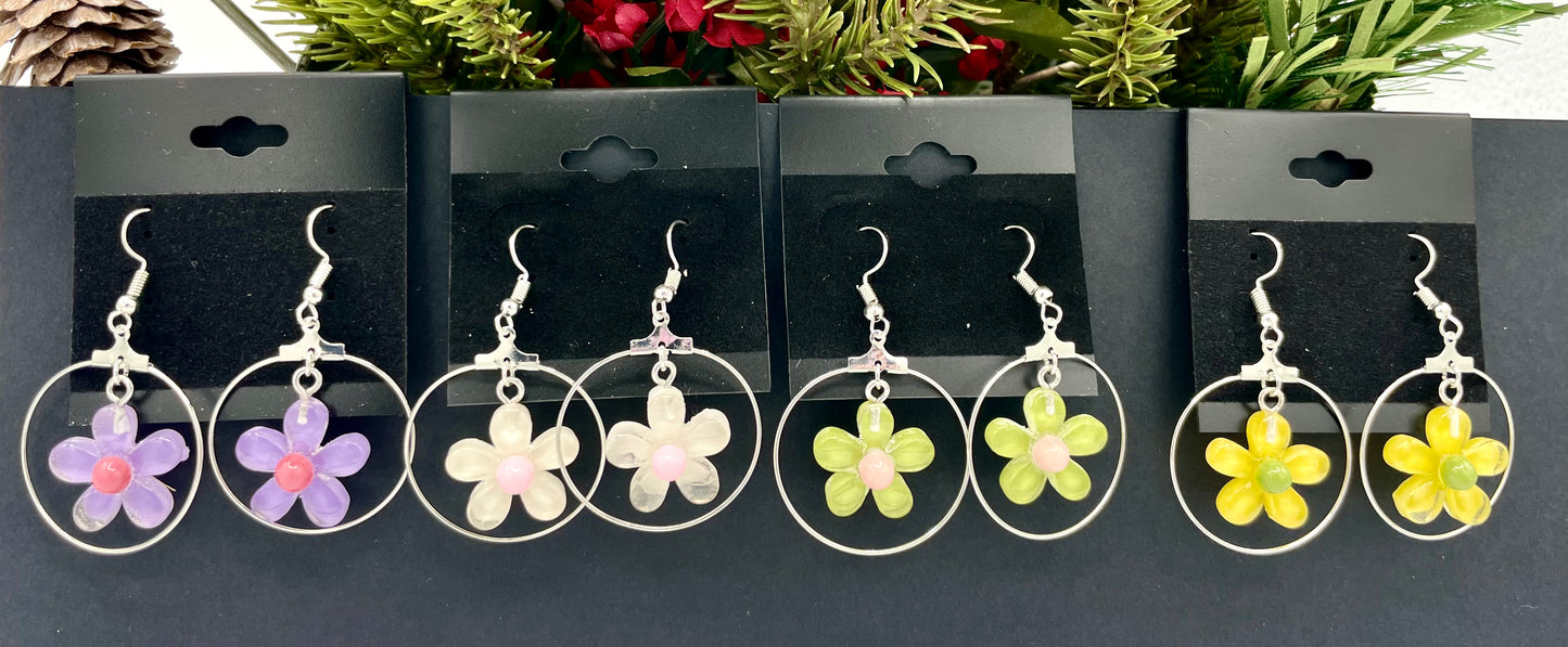 Add a pop of retro charm with these 1.25" flower earrings from Kim's Krafts. Choose from a variety of colorful options. Perfect for any flower child!